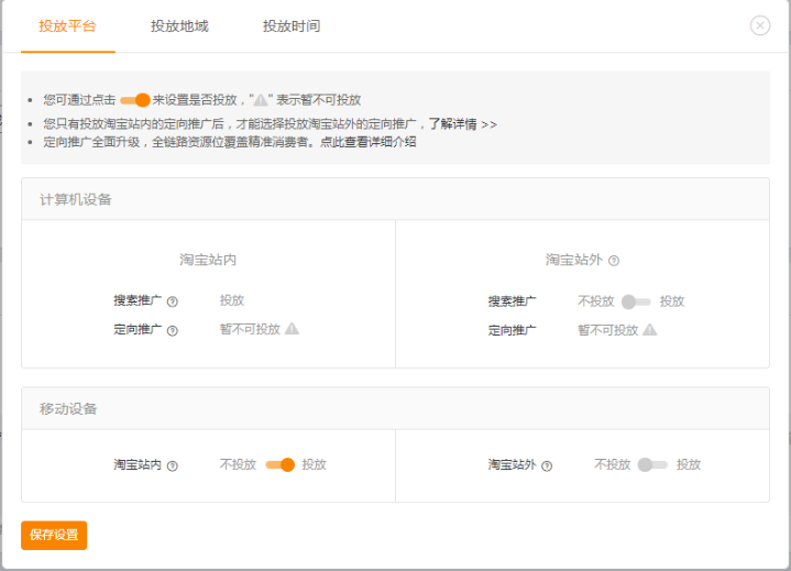 地域:沒有數(shù)據(jù)的,除不包郵地區(qū)及偏遠(yuǎn)地區(qū)外全部投放;有數(shù)據(jù)的,根據(jù)數(shù)據(jù)篩選搜索人氣高,點(diǎn)擊率高的地區(qū)投放。