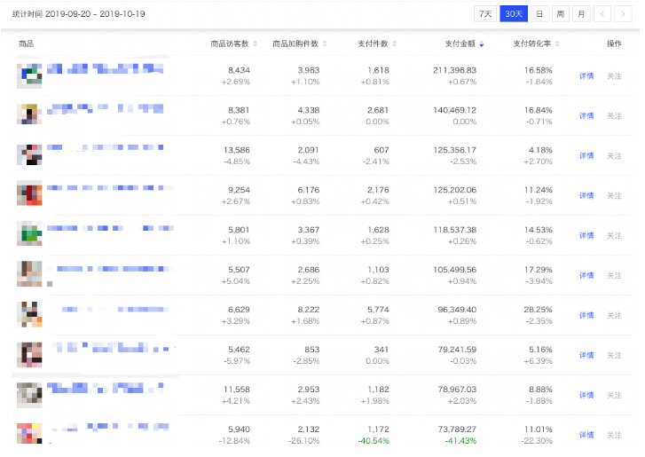 店內(nèi)熱銷爆款由幾個(gè)不同的子類目組成:護(hù)膚套裝、精華、面霜、面膜組成,不是單一的某個(gè)子類目,也不是單一某款商品,這樣能獲取更多流量的同時(shí),還讓買家有更多的選擇性,再加上爆款產(chǎn)品相對(duì)于同行來(lái)說(shuō)有著自己的優(yōu)勢(shì),所以店鋪老客更不容易流失,還能達(dá)到老拉新,新轉(zhuǎn)老的效果。