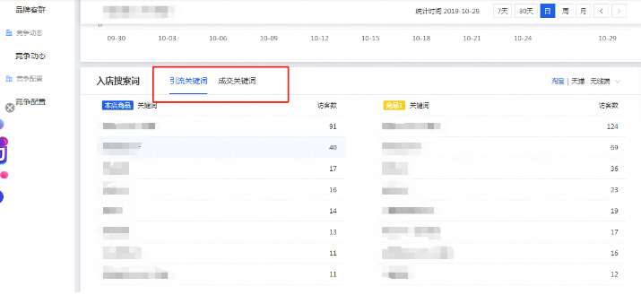通過這一渠道,重點(diǎn)對(duì)比自己店鋪和競(jìng)店的引流詞和成交詞的流量以及轉(zhuǎn)化的變動(dòng),關(guān)鍵詞和產(chǎn)品的賣點(diǎn)和突破點(diǎn)的方向,來結(jié)合自己的產(chǎn)品和現(xiàn)狀選擇性的突破。