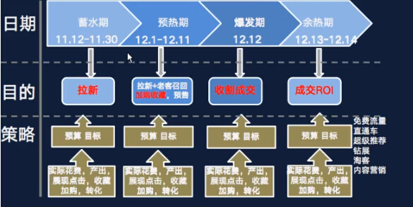 1.雙十二的腳步也越來越靠近了,當(dāng)新品遇上雙十二,具體玩法又應(yīng)該包括什么呢?首先先展示一下對(duì)應(yīng)日期和策略