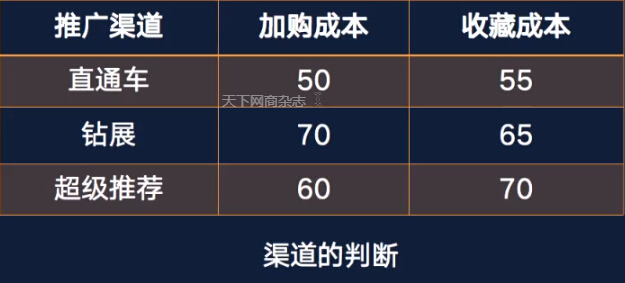 那怎么節(jié)省推廣費(fèi)?答案就是把錢花在刀刃上,按照加購(gòu)成本和收藏成本的比例算出怎么分配渠道的預(yù)算比例,從而把錢都投入到效果更佳的渠道中。