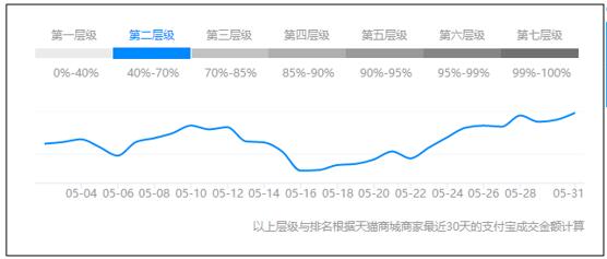 也就是說你的層級上升或者下降的時候,你的店鋪綜合質(zhì)量得分是一定會發(fā)生變化的,比如你從第一層級變到了第二層級,或者從第三層級降到了第二層級。但是在這里你要注意一個小細節(jié):你的店鋪層級突破到高層時,你的免費自然搜索流量并不一定立刻上升,甚至有可能短期內(nèi)會有小幅下滑。