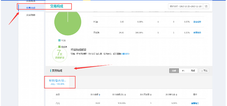 ①?gòu)那:笈_(tái)進(jìn)入生意參謀,從流量的來源渠道我們可以看到店鋪的流量構(gòu)成,隨著無(wú)線端的普及,現(xiàn)在網(wǎng)購(gòu)客戶群體百分之九十都是手機(jī)端用戶,所以我們的關(guān)注點(diǎn)也是在無(wú)線端的流量獲取上面,不付費(fèi)的流量依然是我們熱衷并追逐的流量端口,其中的手淘搜索,手淘前端等不付費(fèi)流量又是我們的著重關(guān)注對(duì)象。