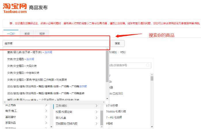 如果再發(fā)布的時(shí)候,不知道怎么去看自己的類目,可以在產(chǎn)品發(fā)布的時(shí)候去搜索。
