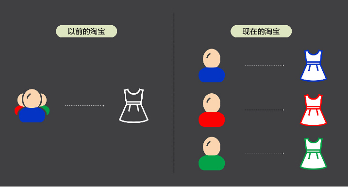 上圖是之前的淘寶和現(xiàn)在的淘寶,在搜索邏輯上的區(qū)別,可以看出來之前的千人一面到現(xiàn)在的千人千面的變化,個性化算法導致我們在搜索產品的時候展現(xiàn)出不同的產品風格,款式,價格,地域等等,正是因為標簽的差異化,最終呈現(xiàn)了展現(xiàn)的個性化,下面淘寶代運營來說說標簽是一個怎么樣的形成過程。