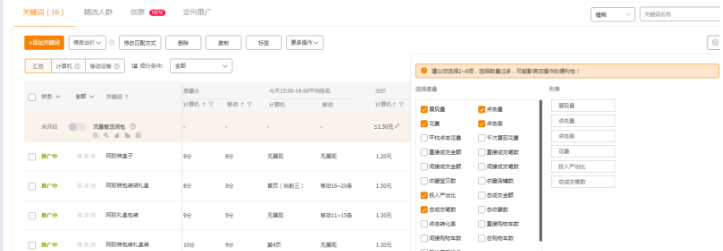 直通車的相關(guān)的關(guān)鍵詞的指標: