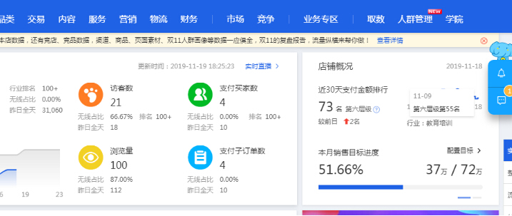 ⑤動銷率:通常是指動銷率=有成交的商品數(shù)/ 在線商品數(shù)。店鋪寶貝沒有流量沒有產(chǎn)出的話會被列入異常商品,異常商品會影響店鋪動銷率和整體權(quán)重,店鋪的異常商品要去優(yōu)化,對于沒有流量沒有訪客的產(chǎn)品可以下架刪除掉。