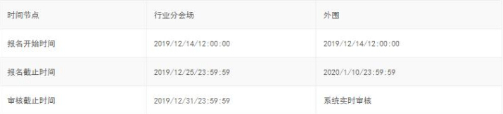 商家/報(bào)名及審核時(shí)間:2019年12月20日17:00:00—2020年1月10日23:59:59