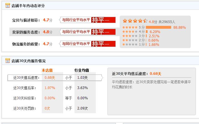 這里的指標就是售后退款處理服務等等,同時還有旺旺在線時長,旺旺響應速度,糾紛處罰,主營商品占比,以及歷史信譽的組成等等。