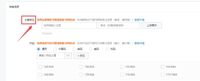 四、產(chǎn)品的主要顏色就是產(chǎn)品的sku這一塊,這個可以根據(jù)產(chǎn)品來設(shè)定,這個顏色的話可能可以增加產(chǎn)品的曝光度,尺碼的話是根據(jù)賣家的產(chǎn)品來設(shè)定