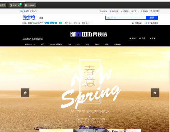 進(jìn)入了頁面之后,進(jìn)入頁面后首先看到的是店招,店招位于店鋪最頂端,店招模塊一般都在店鋪的最上面第一個模塊或是第二個模塊的位置,店招形狀是長方形的,尺寸一般為:950*120 或950*150。然后是導(dǎo)航條,導(dǎo)航條就是讓顧客可以清楚,快速的找到自己所要的東西的類目,而賣家可以把自己 要表達(dá)的重要內(nèi)容添加在導(dǎo)航里,就像實體店里這邊是日用品,那邊是食品區(qū),而另一邊是促銷的一樣。接著是海報,進(jìn)入你的店鋪的客人大多數(shù)是單獨進(jìn)入寶貝的頁面,從寶貝頁面去首頁的大概會有10%-30%左右,所以首頁有一張大氣漂亮的海報會吸引客人去看看你首推的寶貝,不但首頁需要海報,寶貝描述頁面也需要放一張你要主推的寶貝海報,這樣才會起到推廣的作用。