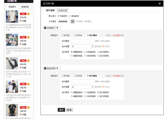 我們可以選擇新品快報和熱銷排行。然后可編輯推薦直接勾選款式,分類,或者關(guān)鍵詞排序。也可在標(biāo)題設(shè)置設(shè)置比較吸引人的標(biāo)題