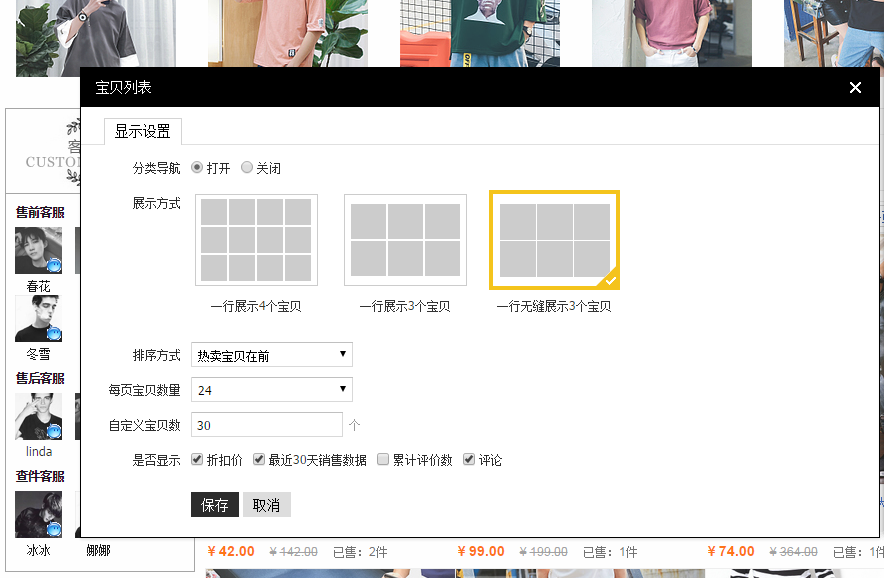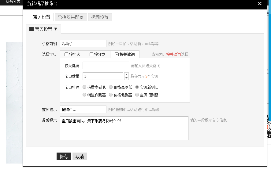 接著下方有所有寶貝編輯可選擇寶貝數(shù)量已經(jīng)是否做一些展示的選項