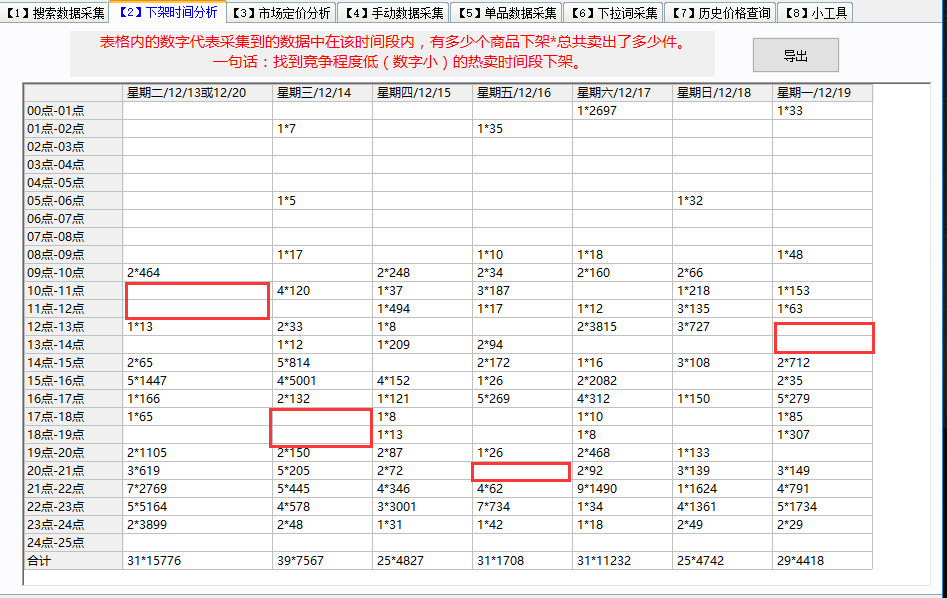 優(yōu)化寶貝的下架環(huán)境,找出最有優(yōu)勢的時(shí)間下架!舉個例子,如果你是一個三年級的小學(xué)生你會去找六年級同學(xué)的麻煩嗎,但是如果碰到一年級的就不一樣了你就NB了,同樣的道理,你的寶貝都是和一些大咖或者比你強(qiáng)很多的寶貝一起下架,那么你肯定競爭不過人家,那么我們避開這些大咖呢 或者是找一些比我們更弱的寶貝一起下架是不是更好呢?相信很多同學(xué)都明白了,這就是下架時(shí)間的重要性,當(dāng)然競爭是相對而言的,沒有絕對的好時(shí)間,競爭隨時(shí)都存在,我們的優(yōu)化就是降低競爭度,就像上圖顯示,我們可以找到紅框選中的時(shí)間空白點(diǎn) 相對來說 這個時(shí)間要比其他時(shí)間好的多!!
