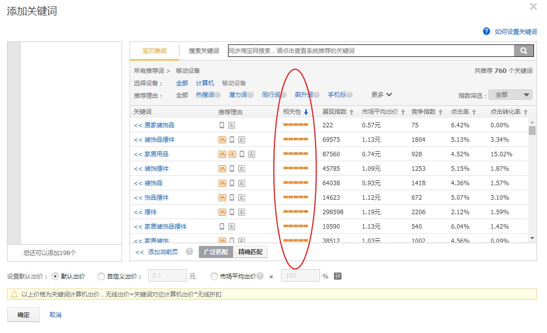 相關(guān)性是什么意思呢,其實(shí)就是關(guān)鍵詞和產(chǎn)品的相匹配度,大家可以想想,如果我們添加關(guān)鍵詞在直通車?yán)镆?,要是關(guān)鍵詞相關(guān)性不大,帶來(lái)的流量就是不精準(zhǔn)的流量,來(lái)的買家就不是太需要我們的產(chǎn)品,點(diǎn)擊率和轉(zhuǎn)化率就會(huì)比較差了。