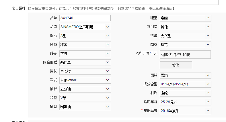 寶貝屬性應(yīng)該盡量填滿。為何要這樣呢?因為在以后我們做直通車推廣的時候,任何關(guān)鍵詞,屬性詞和文案都是能增加我們寶貝的相關(guān)性的。另外,屬性一定要仔細準確,任何不準確的屬性在商家惡意競爭中,他會去惡意投訴你導(dǎo)致你寶貝的下架。
