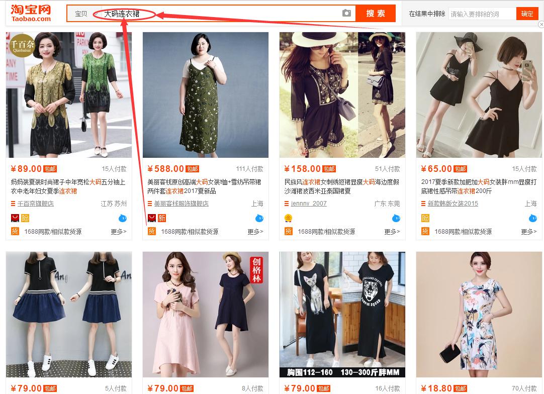 而如果我們的產(chǎn)品更傾向于大碼連衣裙, 因?yàn)槲覀兊漠a(chǎn)品模特是比較胖的, 那很明顯我們針對(duì)人群就是喜歡穿大碼的, 所以我們?nèi)绻么蟠a連衣裙作為精準(zhǔn)的核心詞來(lái)組合標(biāo)題, 那我們的產(chǎn)品就有更多的機(jī)會(huì)展現(xiàn)在搜索大碼連衣裙的人群面前, 而在這個(gè)人群面前你在搜索雪紡連衣裙的人群面前點(diǎn)擊率更加的大, 你就是這個(gè)人群,更加適合我們的產(chǎn)品, 而我們的產(chǎn)品也就更加容易獲得流量, 就更加容易獲得訂單, 我們產(chǎn)品在這樣的人群面前就更加容易的得到數(shù)據(jù)和權(quán)重的提升。