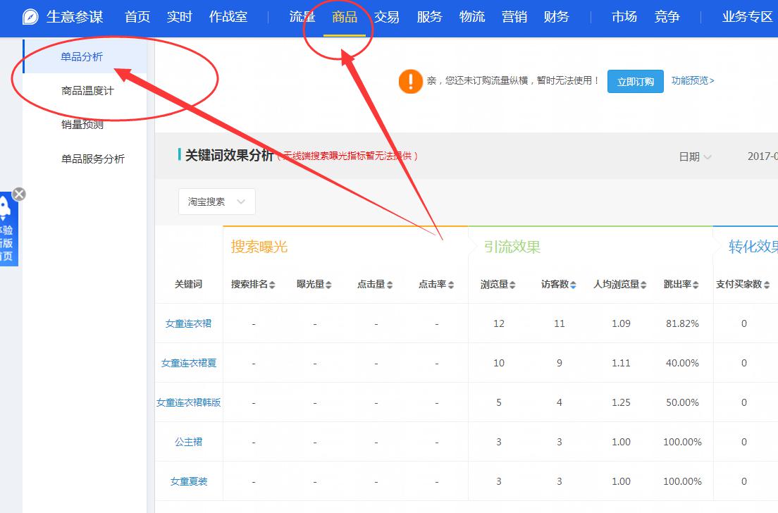 而強(qiáng)化產(chǎn)品群標(biāo)簽,首先要學(xué)會的是通過生意參謀的單品分析來看一下產(chǎn)品的競爭關(guān)鍵詞,精準(zhǔn)的關(guān)鍵詞是要找的產(chǎn)品自身有的關(guān)鍵詞數(shù)據(jù),因為通過尋找到數(shù)據(jù)最好權(quán)重最大的關(guān)鍵詞。來確定產(chǎn)品說針對性的人群,而且有人群就需要通過關(guān)鍵詞來進(jìn)行體現(xiàn)出來,比如說大碼連衣裙,像這樣的關(guān)鍵詞能夠凸顯出來的人群非常的精準(zhǔn),通過這些人群來斷定他們想要的是什么,想要的是透氣還是寬松還是大碼,還是顯瘦這樣一些賣點和屬性,,然后重點通過主圖凸顯出這些屬性和賣點。