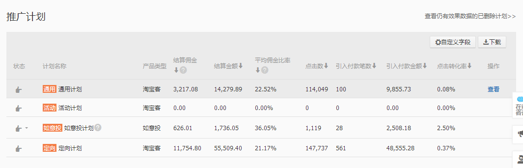 如意投計劃:主要展示在愛淘寶,前期需要比較高一些比例的傭金去卡排名這樣才能活動更加靠前的位置,還有有一些不開直通車的商家可以用這個計劃測款
