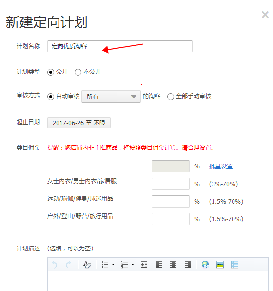 通用計劃:所有的淘客都可以看見他們可以用里面又傭金的產(chǎn)品去推廣但是建議通用的傭金不要給的太高。