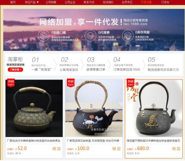 在這些都確定沒有任何問題后,然后在看店鋪導(dǎo)航里是否有“代理加盟”這一項,這是最為重要的!因為有的供應(yīng)商只是要你下載數(shù)據(jù)包就沒了,店鋪的具體相關(guān)介紹都沒有很多的了解!這樣的供應(yīng)商就不用去看了!因為這樣的為這樣的供應(yīng)商代理會出現(xiàn)很多的問題,比如運(yùn)費(fèi)問題,退換貨問題,運(yùn)費(fèi)怎么算,由誰來出?發(fā)貨時間?什么快遞?偏遠(yuǎn)地區(qū)怎么處理?等等。如果是什么都不說清楚就可以直接代理的,大家就可以不用看了!