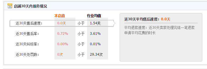 30天的售后速度,售后率,糾紛率,處罰數(shù),都可以和行業(yè)均值作對(duì)比,低于行業(yè)均值健康的狀態(tài)。如果出現(xiàn)高于行業(yè)平均值的情況,就會(huì)影響到店鋪的基礎(chǔ)權(quán)重,基礎(chǔ)動(dòng)態(tài)分都不行,店鋪很難發(fā)展。