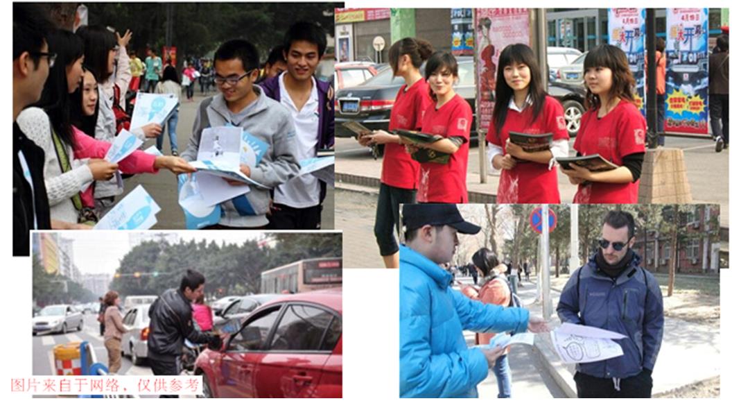 我們看上圖,光看圖片我們就能猜到了,對的!就是發(fā)傳單。假如你新開了一家飯店,店里飯菜好吃還便宜,而且開業(yè)前幾天還半價送小涼菜,這么大的誘惑,你是去呢?還是去呢?還是去呢?
