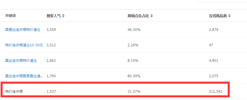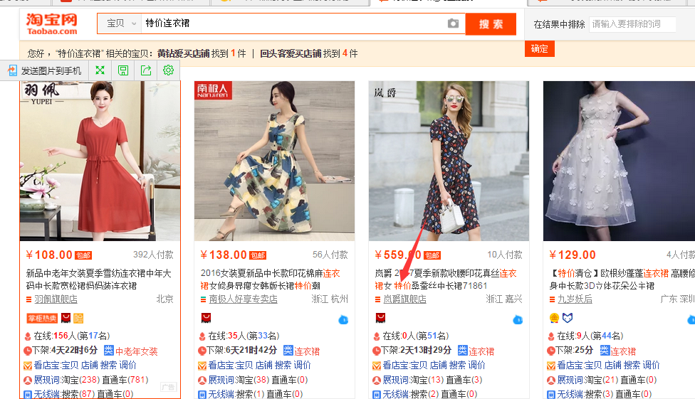 看到圖上的紅色字了嗎?只描紅了‘連衣裙’這個詞根 ,而‘天天特價’并沒有被描紅,這說明了什么?沒錯這說明了系統(tǒng)在做搜索條件的時候并沒有考慮你的天天特價這個詞根。并且如果你使用了這個詞,你還會被系統(tǒng)檢測出來強制下架!可謂是吃力不討好!