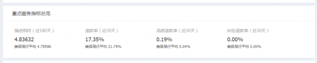 退款率:這個(gè)指標(biāo)是指最近30天內(nèi),退款成功筆數(shù)/支付寶支付子訂單數(shù),退款包括售中和售后的僅退款和退貨退款。這個(gè)指標(biāo)可以看到你自己產(chǎn)品和行業(yè)的均值情況,一般需要比行業(yè)均值低。如果你的產(chǎn)品高于行業(yè)均值的話,那你就要思考為什么產(chǎn)品的退貨率這么高?你要讓售后客服去了解為什么?是哪方面的問題?有沒有解決的辦法?