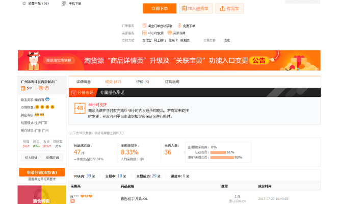 很多同學(xué)在新手選貨源的時候,避免了囤貨的風險,也省去了自己做詳情頁還有花時間包裝,更不需要處理退換貨引起的倉庫管理問題,于是就選擇了做一件代發(fā)和代銷。然而很多做過的同學(xué)覺得很難做,又不知道自己的寶貝發(fā)出去到底怎么樣,也不知道供貨商那邊的真實庫存情況,最嚴重的就是同質(zhì)化嚴重(因為一個好的寶貝不止你一個分銷的。)很多同學(xué)就問我到底做代銷能不能做起來,今天我就來跟大家分享如何做好分銷。