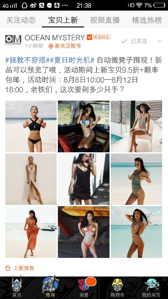 2.除了直通車預熱定時上架的寶貝之外,微淘也是預熱的重要渠道,在微淘里投放預熱產品的鏈接和圖片,有利于買家提早的加購收藏,提些小建議: