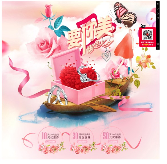 和很多活動一樣,七夕節(jié)也有他的專屬活動頁面,也許很多賣家會認(rèn)為制作專屬頁面真的是白費功夫,其實并不是這樣。就像我們做實體店營銷的時候,一樣需要打出各種廣告和一些裝飾,來烘托活動的氣氛。淘寶店鋪也是相同的邏輯,通過制作符合本次節(jié)日的活動專題頁面,通過大量的活動海報來吸引客戶,讓客戶感受到活動的氛圍從而促進(jìn)下單和購買。這就是為什么每到一個節(jié)日,大的商家們都紛紛制作活動專題,紛紛調(diào)整活動海報,來讓店鋪更具吸引力和競爭力的原因了。