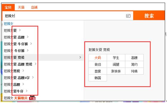 這里面,“短褲女”你就可以看成是一個產(chǎn)品詞,也就是女款短褲,當然,如果你比較較真的話,你還可以說“短褲”是產(chǎn)品詞,然后女也是起到修飾作用的屬性詞。然后其他的,比如說:高腰、牛仔、寬松、大碼、學生、做舊、簡約、顯瘦、純棉、胖妹妹等等,這些詞都可以叫做修飾詞。