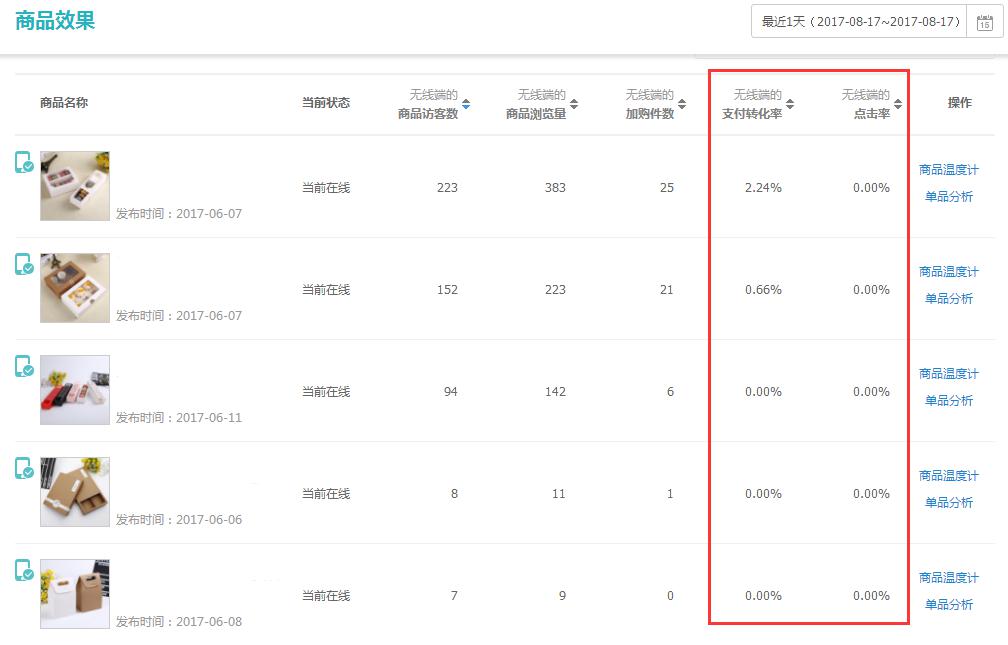 既然下滑了那么我們就打開(kāi)單品分析,我們就可以從這里看到,無(wú)線端搜索給我們帶來(lái)了多少的訪客。