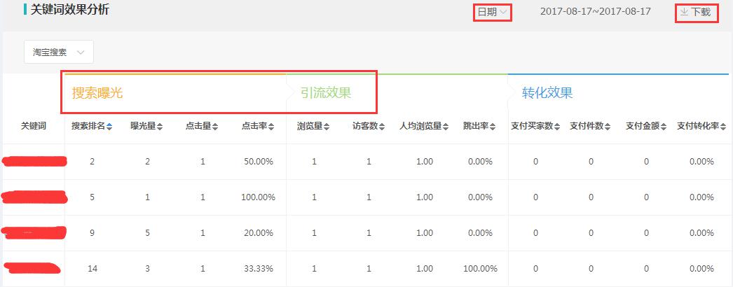 如果說(shuō)看不清楚的話,可以點(diǎn)擊旁邊的下載。下載之后我們把這些關(guān)鍵詞用一個(gè)表格填寫好。然后我們?cè)诒砀窭锩婵梢郧宄目吹竭@些關(guān)鍵詞的引流效果,這里會(huì)出現(xiàn)一種情況,如果引流下降幅度特別大的詞,你就需要好好的去注意了。