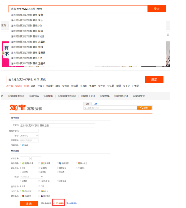 首先在搜索框輸入核心詞,在搜索框下方就會出現(xiàn)你所輸入核心詞的系統(tǒng)推薦屬性詞,天貓代運(yùn)營可以輸入下方符合我們產(chǎn)品的詞語繼續(xù)輸入,一直到系統(tǒng)不再推薦為止,接下來將這個詞在高級搜索中去搜索,我們就可以知道這個詞在市場中有多少對應(yīng)的寶貝,選擇在線商品最少的詞組合就好??赡苡行﹪娮訒粞裕篨X,高級搜索沒了。我只想說:呵呵。