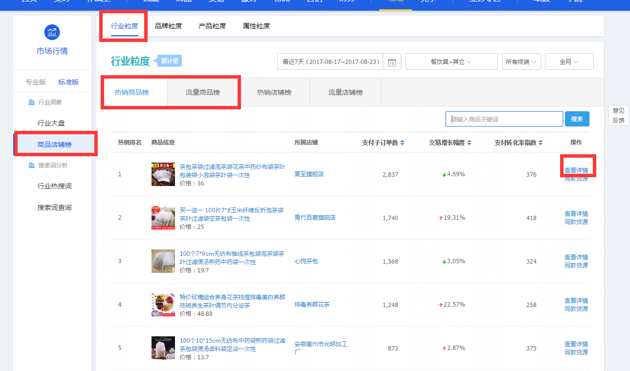 天貓代運(yùn)營在生意參謀—市場—商品店鋪榜去尋找高引流或者高轉(zhuǎn)化的產(chǎn)品是否有用到我們的目標(biāo)詞,不要選擇大詞,大詞我們無法和大店鋪競爭,我們主要使用長尾詞就可以。