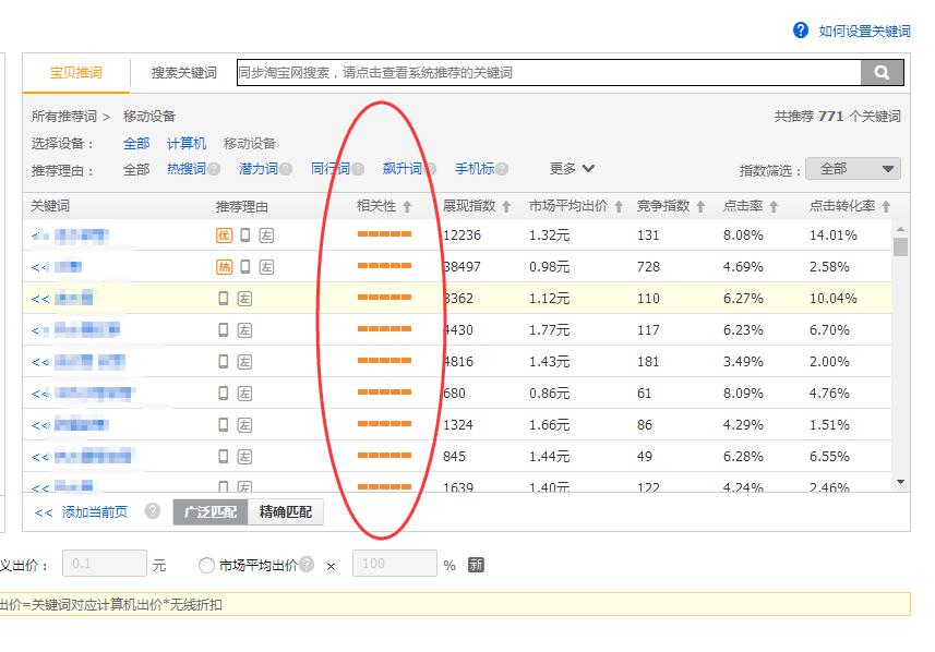 2.優(yōu)化方法,選詞的時候重點添加點擊率比較高的關(guān)鍵詞,首先我們要在直通車添加關(guān)鍵詞中找到以點擊率比較高的關(guān)鍵詞。