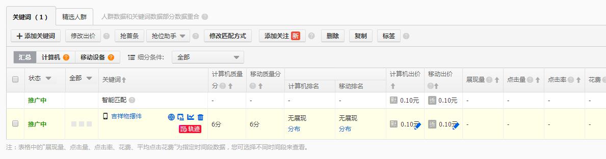 首先我們添加一個關(guān)鍵詞在直通車計劃里。