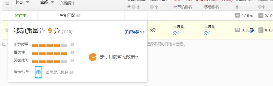 什么是基礎(chǔ)質(zhì)量分,在大家添加關(guān)鍵詞在直通車之后,會有初始的質(zhì)量分,有的關(guān)鍵詞是十分,有的關(guān)鍵詞是七八分,這些沒有任何優(yōu)化過的質(zhì)量分就是基礎(chǔ)質(zhì)量分。