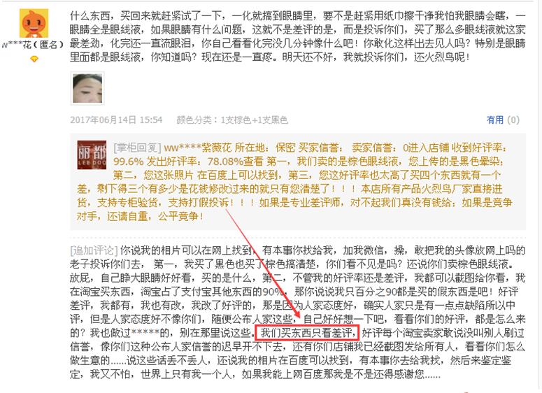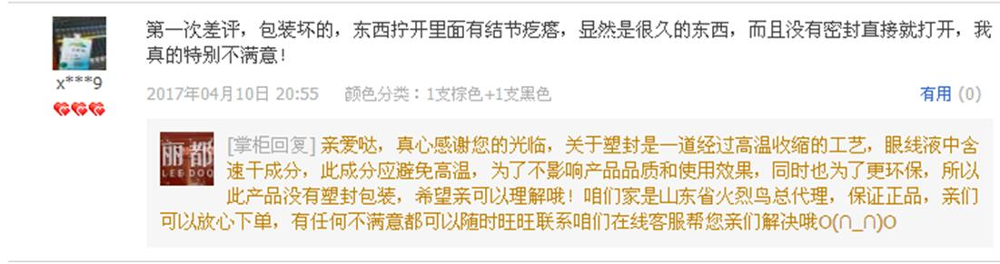 看圖4說話,顧客針對眼線筆不滿意,賣家的解釋里沒有提出任何解決方案,也沒有告知可以辦理退貨。然后就草草的結(jié)束了。