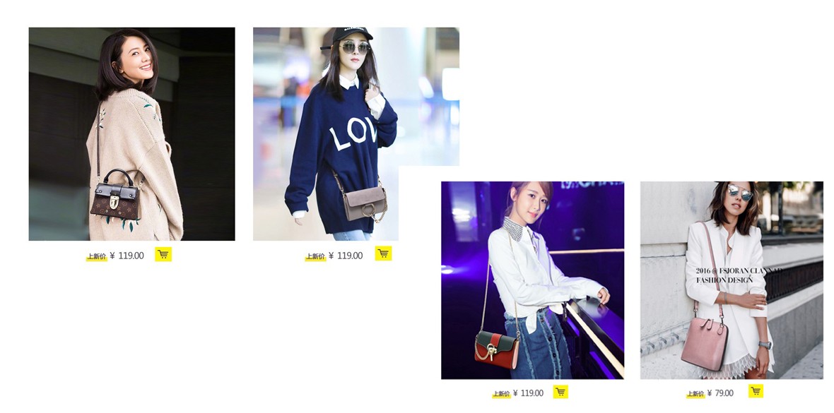第二種方法呢,就是分清主次。我們在對商品進行展示的時候,應(yīng)該首先考慮顧客最需要了解的產(chǎn)品信息,只有符合了顧客需求的陳列設(shè)計才會有價值?,F(xiàn)在有很多賣家,要么是代理多個品牌,要么是貨品方面沒有形成自己的風(fēng)格,想當(dāng)然的認為放在首頁上面的商品應(yīng)該越多越好!因此當(dāng)顧客進入店鋪的時候,就覺得好像進入了一個雜貨鋪。雖然說陳列的寶貝多,但無法判斷出是否有符合自己需求的寶貝,因此在粗略的看了一眼之后,顧客很容易就直接退出,導(dǎo)致了顧客的流失。所以說店鋪寶貝陳列的時候一定要主次分明,要有一種統(tǒng)一的色調(diào)和風(fēng)格,只有只有這種整齊統(tǒng)一的規(guī)劃和明確的色彩顯示,才能讓進店的顧客立刻就明確店鋪的商品定位,既然他們會繼續(xù)更加深入的瀏覽。另外就算買家暫時對咱們店鋪沒有需求,但是店鋪有非常強烈的風(fēng)格特色,導(dǎo)致他們有其他這方面的需求的時候,會很快想起咱們的店鋪成為回頭客。如圖所示的明星同款也算是一種特色,