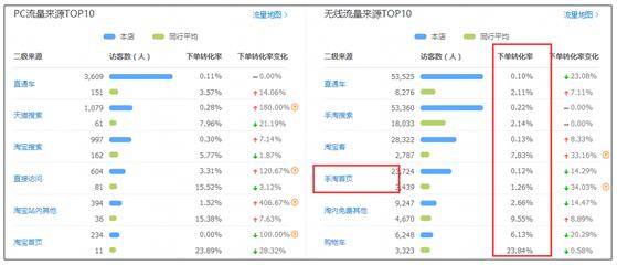 比如突然有了大量的來自于手淘首頁的流量的時候,這時候你的轉(zhuǎn)化率肯定是會下滑的,此時你只需要看一下跟行業(yè)均值對比,你的手淘首頁流量有沒有比較差,如果都OK,是可以不用處理的。