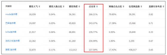 點(diǎn)擊率是一個(gè)非常重要的指標(biāo)。在用生意參謀選詞的時(shí)候,可以看到每一個(gè)關(guān)鍵詞“點(diǎn)擊率”這個(gè)數(shù)據(jù)指標(biāo)。這個(gè)指標(biāo)尤其是在新品期是非常重要的,因?yàn)殛P(guān)鍵詞是給你展現(xiàn)的機(jī)會,但是抓住機(jī)會的能力(點(diǎn)擊率)才能真正的體現(xiàn)你的產(chǎn)品吸引力。