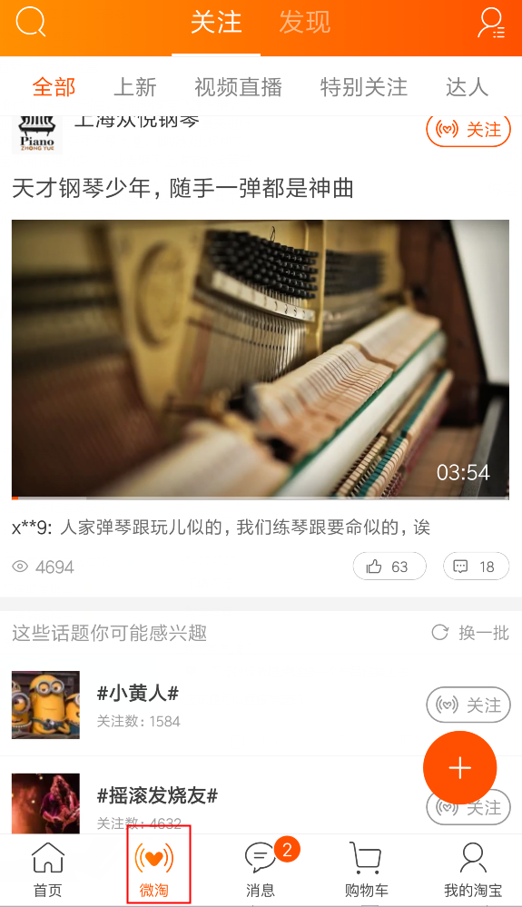 微淘是我們如今淘寶內容化運營第一平臺,他顯示在無線淘寶頁面的下方第二子類目