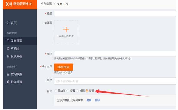 2、通過發(fā)布微淘-發(fā)寶貝清單關(guān)聯(lián)賣家群,并且在微淘動態(tài)頻道,粉絲可以看見,同時在店鋪的“微淘廣播”內(nèi)也能看見,群聊的字體是藍色的,粉絲只需要點擊藍色字體就能進入群聊!很方便!