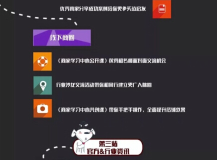 《商家學(xué)習(xí)中心公開課》獲得和名師面對(duì)面交流機(jī)會(huì),行業(yè)沙龍交流活動(dòng)帶你和同行建立更廣人脈圈,《商家學(xué)習(xí)中心共創(chuàng)課》帶你把手操作,全面提升店鋪效果。