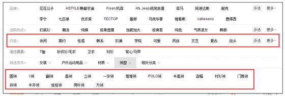 我們看這些,這些都是屬性層面的,比如風(fēng)格和領(lǐng)型這兩個(gè),不同風(fēng)格的衣服面對(duì)的目標(biāo)顧客群是不一樣的,不同的領(lǐng)型面對(duì)的目標(biāo)顧客群也是不一樣的。比如說(shuō),喜歡性感風(fēng)格的消費(fèi)者可能對(duì)民族風(fēng)的完全是不感冒的;一直穿翻領(lǐng)的消費(fèi)者可能對(duì)于圓領(lǐng)是不感冒的。