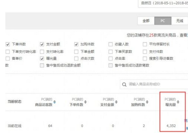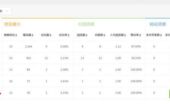 然后我們從單品分析里,也可以看到更具體的PC端,哪些詞的曝光量,點擊率如何。這里說下,詞的匹配度相關性對點擊率影響也很大。