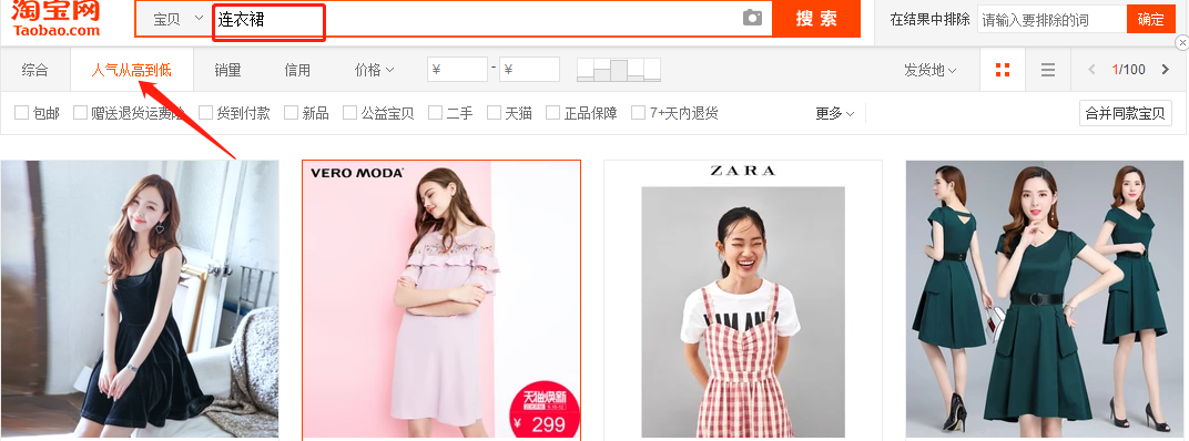 2. 淘寶搜索選款:根據(jù)人氣排序
